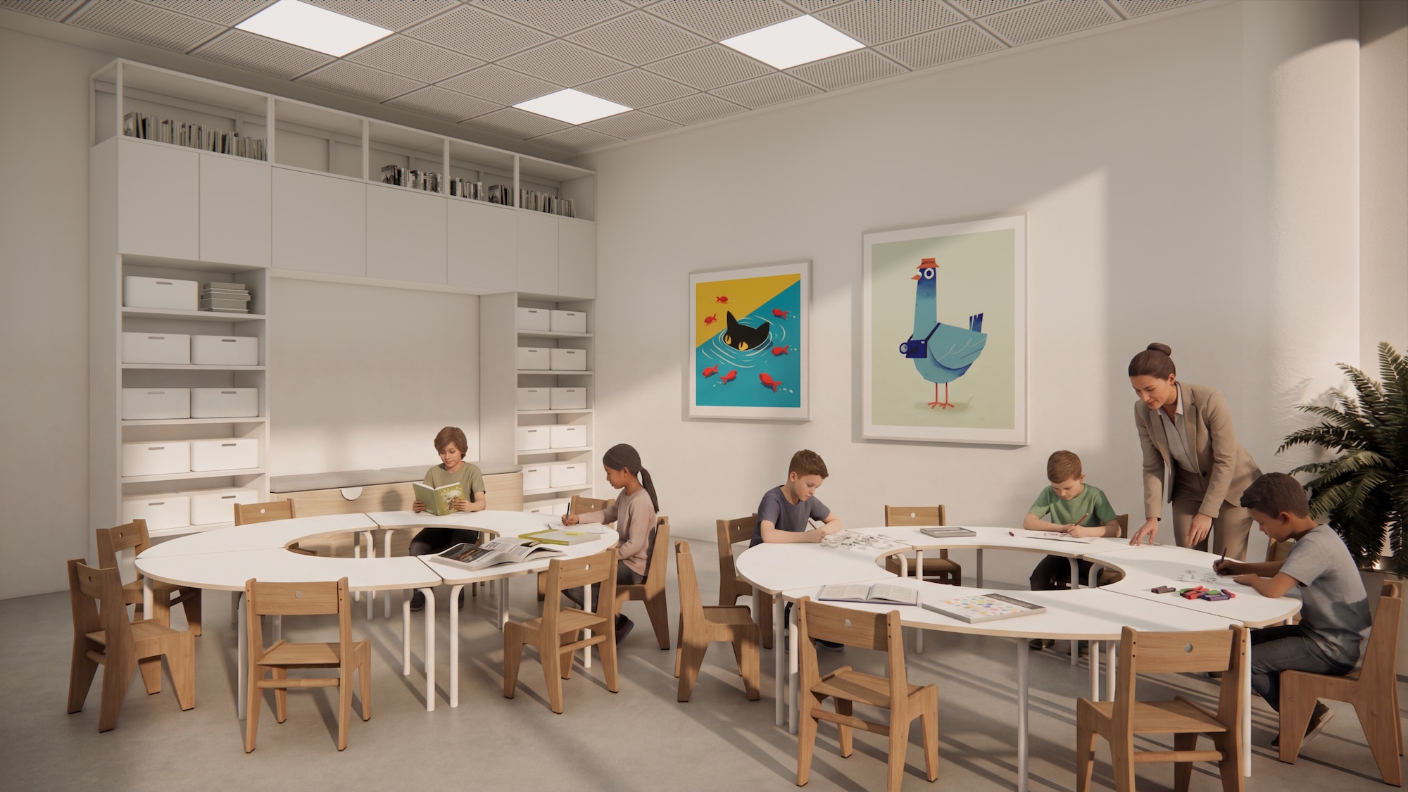 - Špičkové zázemí: Až 18 kmenových tříd , specializované učebny, "Deep work" zóny pro hluboké soustředění i relaxační koutky.